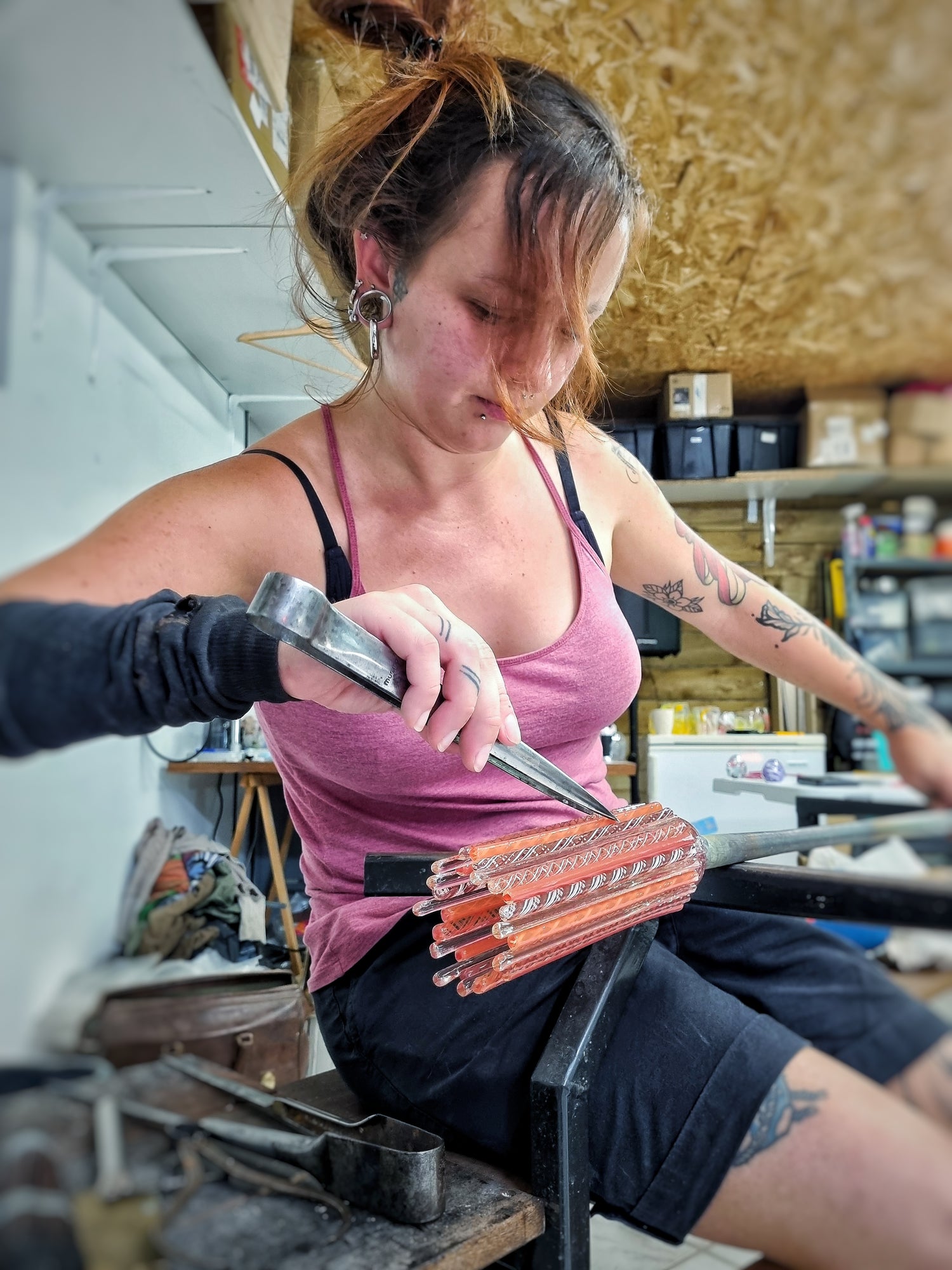 Mon histoire avec le verre a débuté en 2012. Ce qui n'était qu'une première immersion est devenu une vocation : un CAP puis un BMA Souffleur de verre, avant de m'envoler au Danemark. Je me suis perfectionnée pendant plus de deux ans auprès de grands verriers, une experience fondatrice qui a affiné mon regard pour le verre et ma technique.
