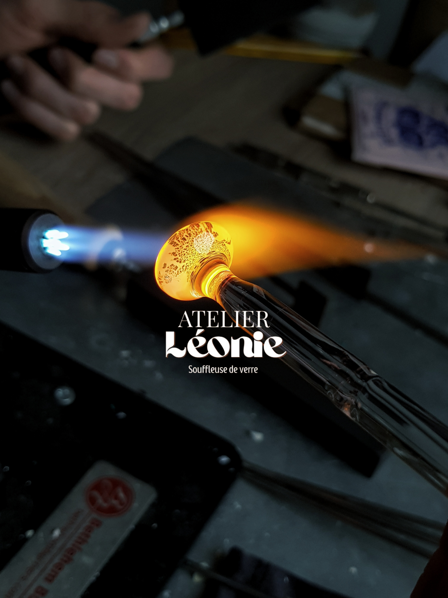 Riche de ces expériences diverses, j'ai eu envie de créer mon propre univers : Atelier Léonie où je m'applique à mettre en œuvre mes idées de part le chalumeau et le verre soufflé.